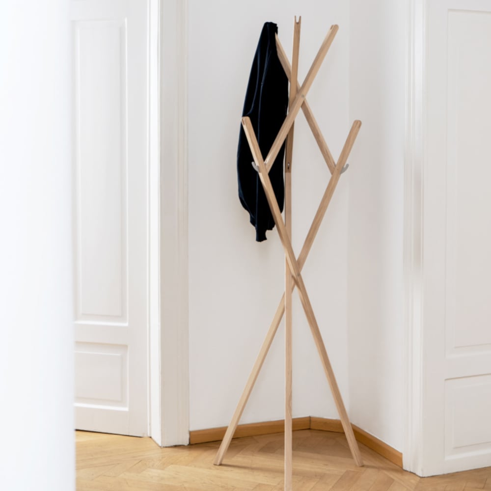 Der Kleiderständer Hut Ab von Moormann wurde von Konstantin Grcic entworfen und ist perfekt für Ihre Kleider. Die Ausformungen an den Stangenenden sind sowohl für Bügel als auch für Aufhänger geeignet. Wird Hut Ab einmal nicht mehr benötigt, so lässt er sich mühelos zusammenklappen.