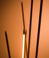 Design Oliver Bahr, Stäbe Esche unbehandelt, Sockel Betonguss weiss-grau, erweiterbar mit Pin LED, Stablängen und Pin Led frei kombinierbar,