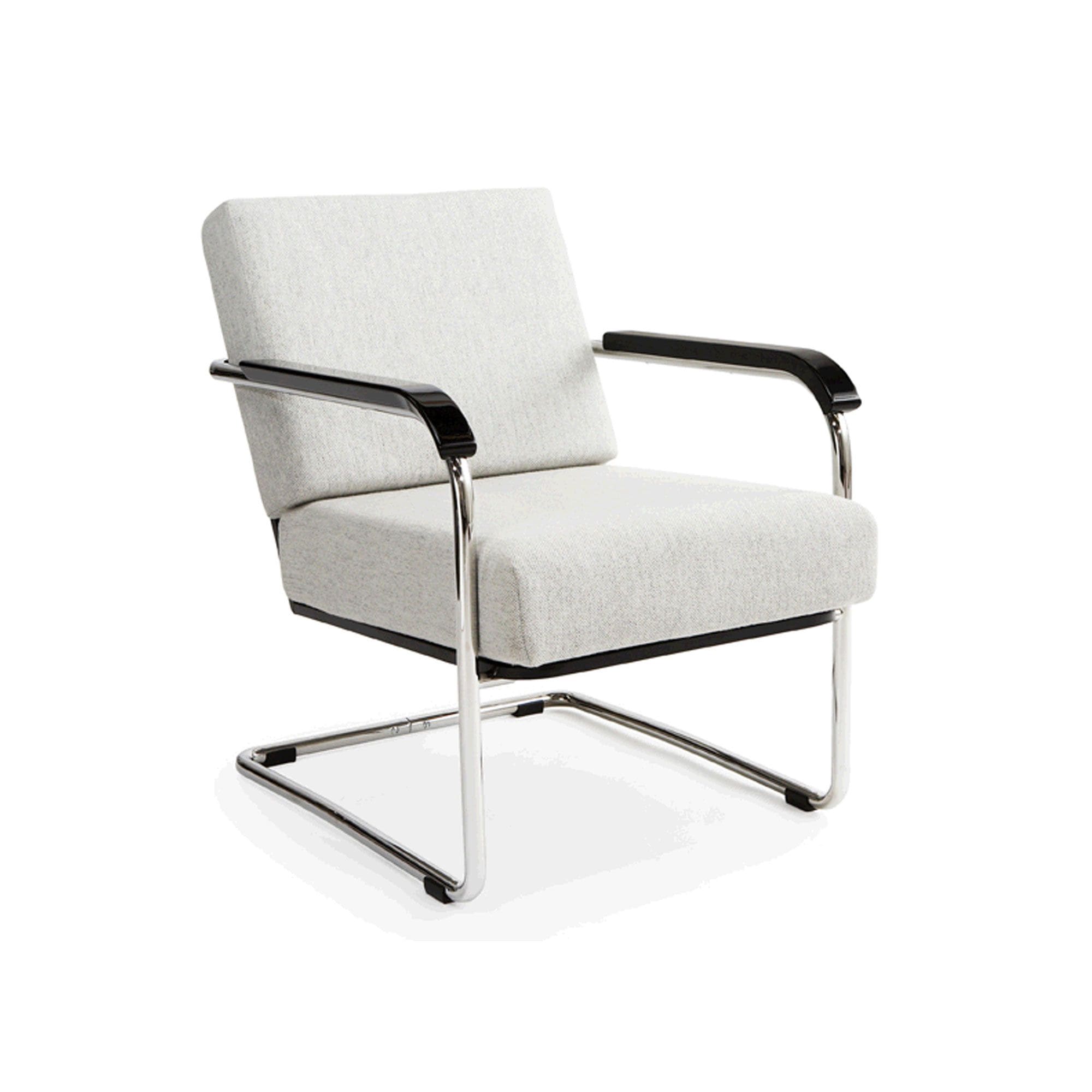 Design Werner Max Moser 1930, Stahlrohr glanzverchromt oder pulverbeschichtet RAL 9005 Tiefschwarz, Schalengleiter PVC Schwarz, Polsterkissen Taschenfederkern, Polsterbezug frei wählbar Hallingdal 65 / Steelcut 2 gem. Kollektion ohne Keder, Leder Montana gem. Kollektion, mit Keder, Armlehne Tiefschwarz hochglanzlackiert oder mit Mehrpreis Armlehnen Esche massiv naturlackiert, Armlehnen Eiche massiv naturlackiert, Armlehnen Amerikanischer Nussbaum massiv naturlackiert.