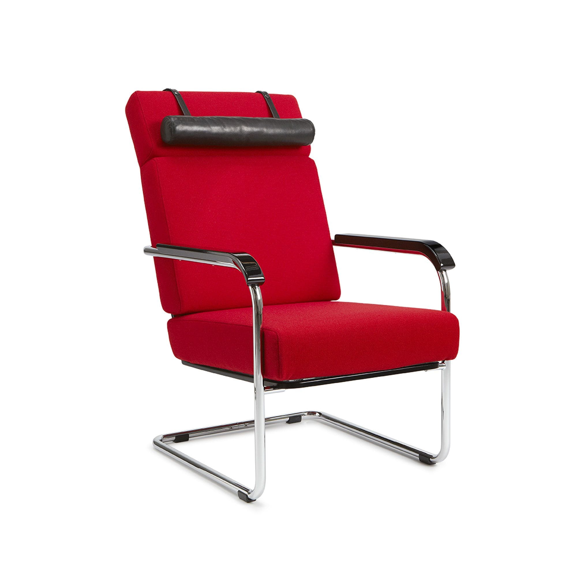 Der Schweizer Architekt Werner Max Moser hat für Embru eine ganze Reihe von Möbeln gezeichnet. Trotz der Nähe zu den bekannten Bauhausmodellen, waren seine Entwürfe immer geprägt vom schweizerischen Gedanken des praktischen Möbels. Der Moser Hochlehner mit dem höheren Kopfteil passt in jede gemütliche Leseecke.